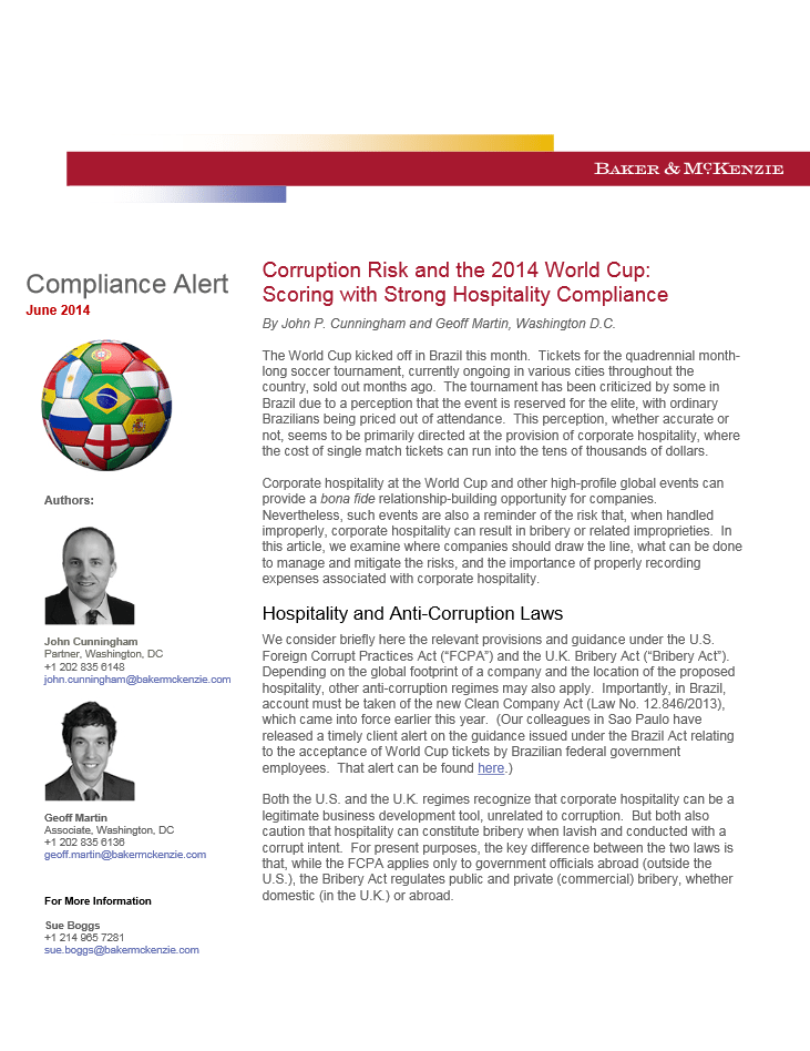 By John P. Cunningham and Geoff Martin, Washington D.C. The World Cup kicked off in Brazil this month. Tickets for the quadrennial month-long soccer tournament,